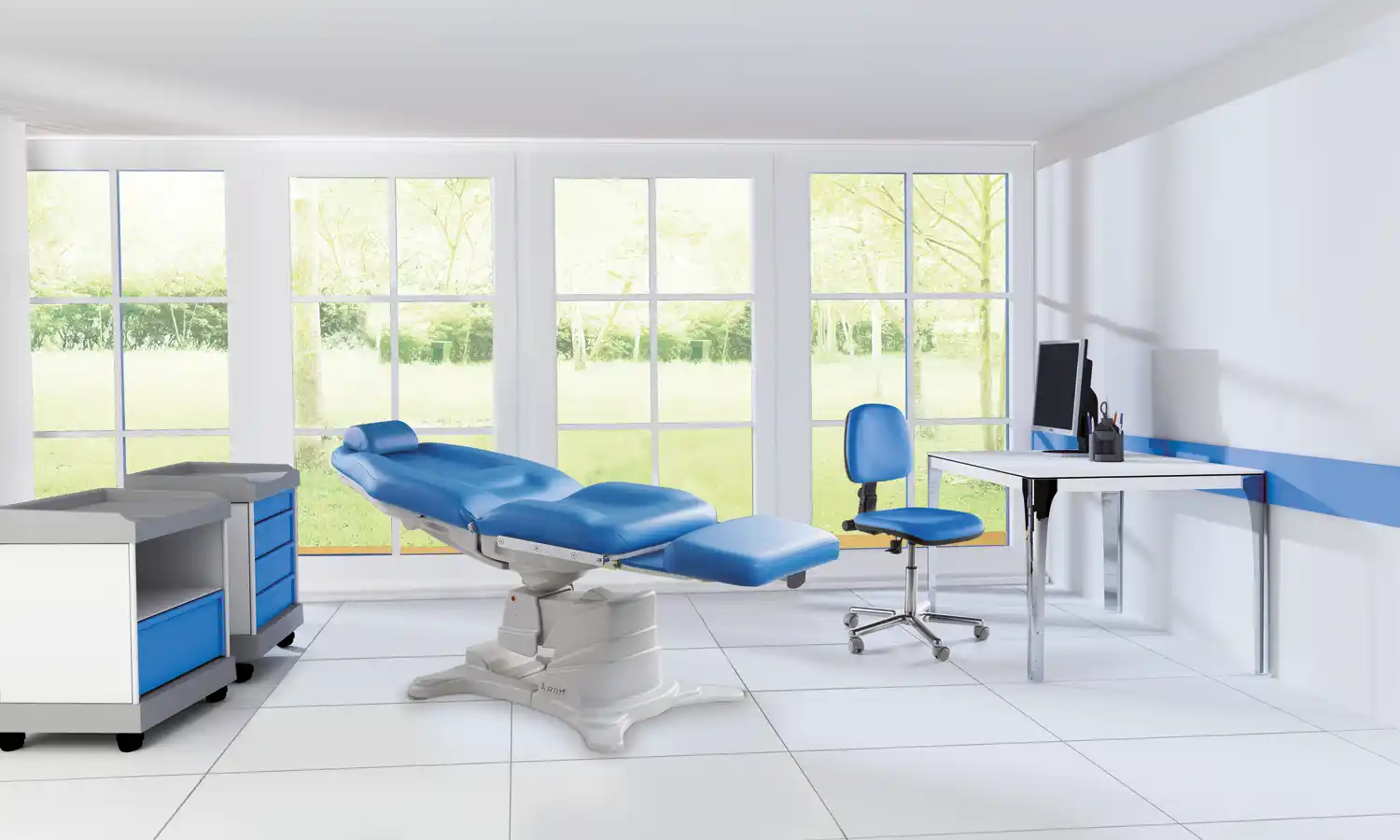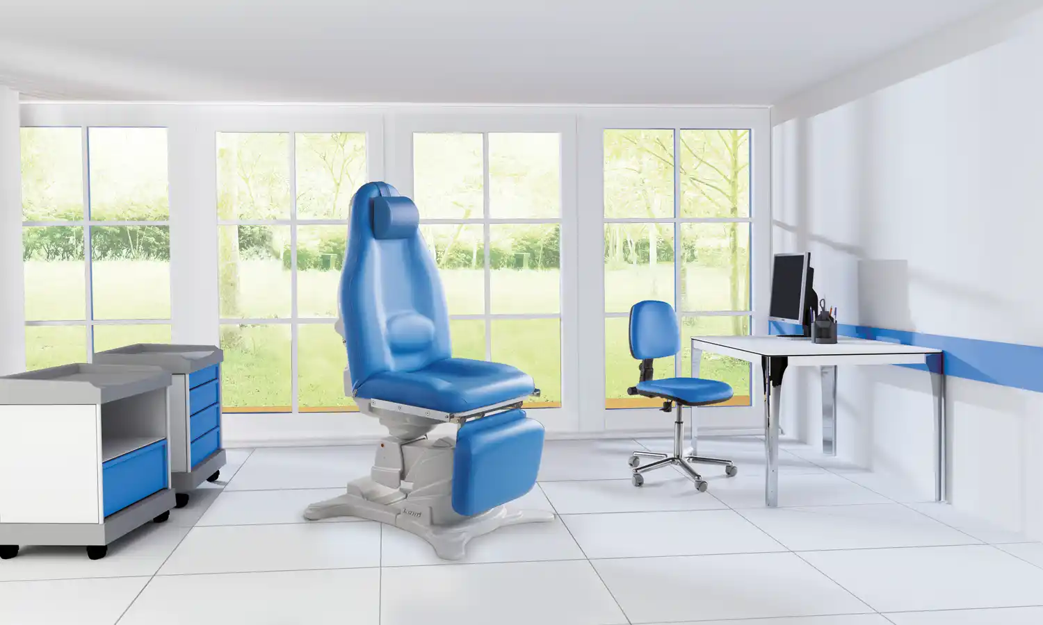 Poltrona a regolazione elettrica per ORL, oftalmologia,